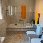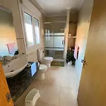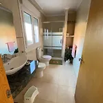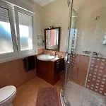 Die Villa in Hio verfügt über ein Badezimmer mit einem Bidet, einer getrennten Toilette und einer Dusche. Ein Haartrockner und Badelaken werden auch angeboten.